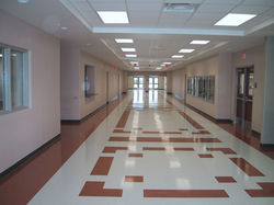 We established each trade schedule with them and pointed out the crucial areas of conflicts. We had to meet daily with the trades to make sure we kept the flow of this project running smoothly. If we lost our momentum, frustration occurs and quality slips. As a team, we made sure all trades kept working without losing time due to improper coordination. The school consisted of classrooms, computer and science labs, a media center, kitchen and cafeteria, stand-alone gymnasium, music, and band rooms.